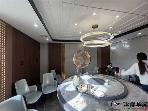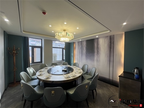 今天分享的是銀川金龍回坊火鍋店裝修設(shè)計(jì)實(shí)景,這家火鍋店裝修設(shè)計(jì)風(fēng)格以新中式國潮風(fēng)為核心,既保留了傳統(tǒng)餐飲空間的雅致底蘊(yùn),又通過現(xiàn)代手法注入年輕活力,精準(zhǔn)契合了當(dāng)下火鍋店裝修設(shè)計(jì)中“文化賦能+體驗(yàn)升級”的趨勢。從包間區(qū)域來看,火鍋店裝修設(shè)計(jì)的“輕奢質(zhì)感”被巧妙落地:墻面采用木紋飾面板搭配金色葉片裝飾,既借由木質(zhì)元素傳遞中式空間的溫潤,又以金屬細(xì)節(jié)提升宴請場景的精致感;圓形餐桌搭配帶有新中式線條的軟包座椅,淺白與墨綠的配色既呼應(yīng)了傳統(tǒng)美學(xué)的雅致,又通過軟包材質(zhì)保證了用餐的舒適感;頂部的圓形吊頂+水晶吊燈組合,既以“天圓地方”的傳統(tǒng)意象強(qiáng)化空間儀式感,又用燈光的暖調(diào)氛圍消解了商務(wù)包間的冷硬。