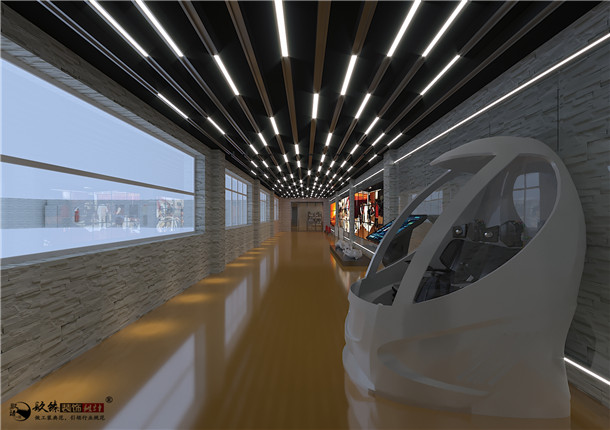項目中,空間的主場是長廊,镹臻裝飾設計師在展示區(qū)采用了直線及燈光的表現(xiàn)手法充分利用墻面區(qū)域和頂面區(qū)域,展示區(qū)頂部設計一個星空頂,充分展現(xiàn)科技感,根據(jù)具體展示需要,結合圖文展板和實物進行展示,使觀者對消防內(nèi)容有直觀了解。